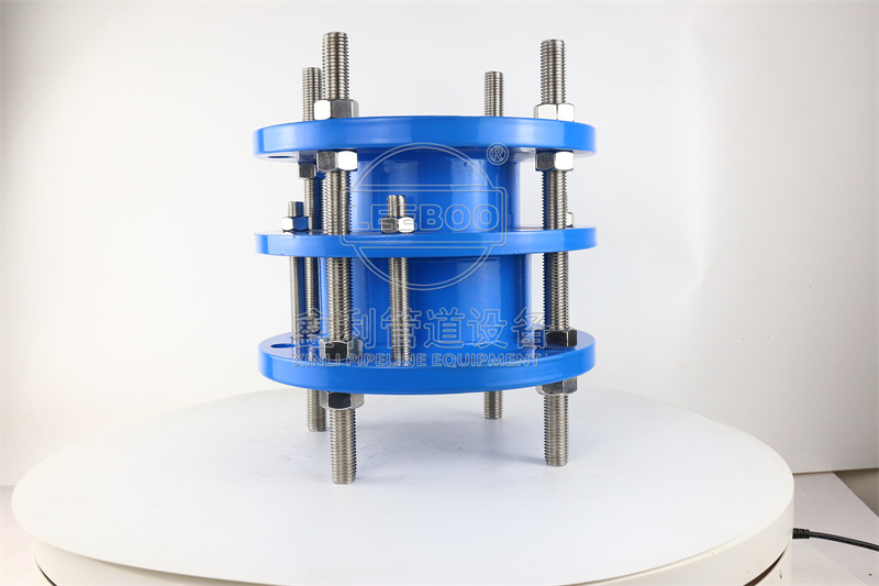 限位伸縮接頭本體上有四片法蘭,并且有限位螺栓和短螺栓,但螺栓均不超出產(chǎn)品本身;而傳力接頭本體上有三片法蘭并且螺栓均長(zhǎng)于產(chǎn)品本體。